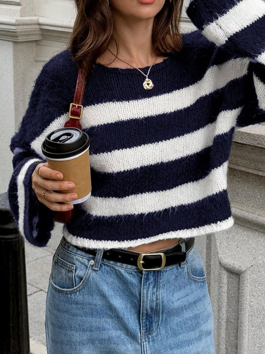 Ethnic Pattern Mohair Knitted Drop Shoulder Sweater