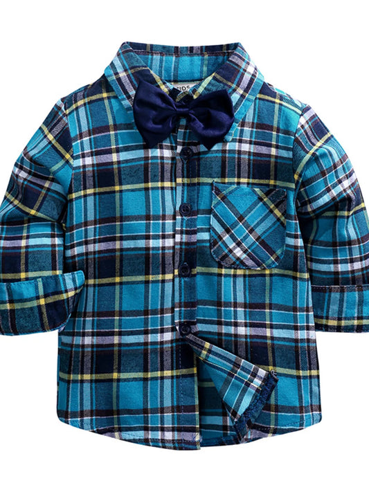 Children's Plaid Shirt & Distressed Jeans with Suspenders Set