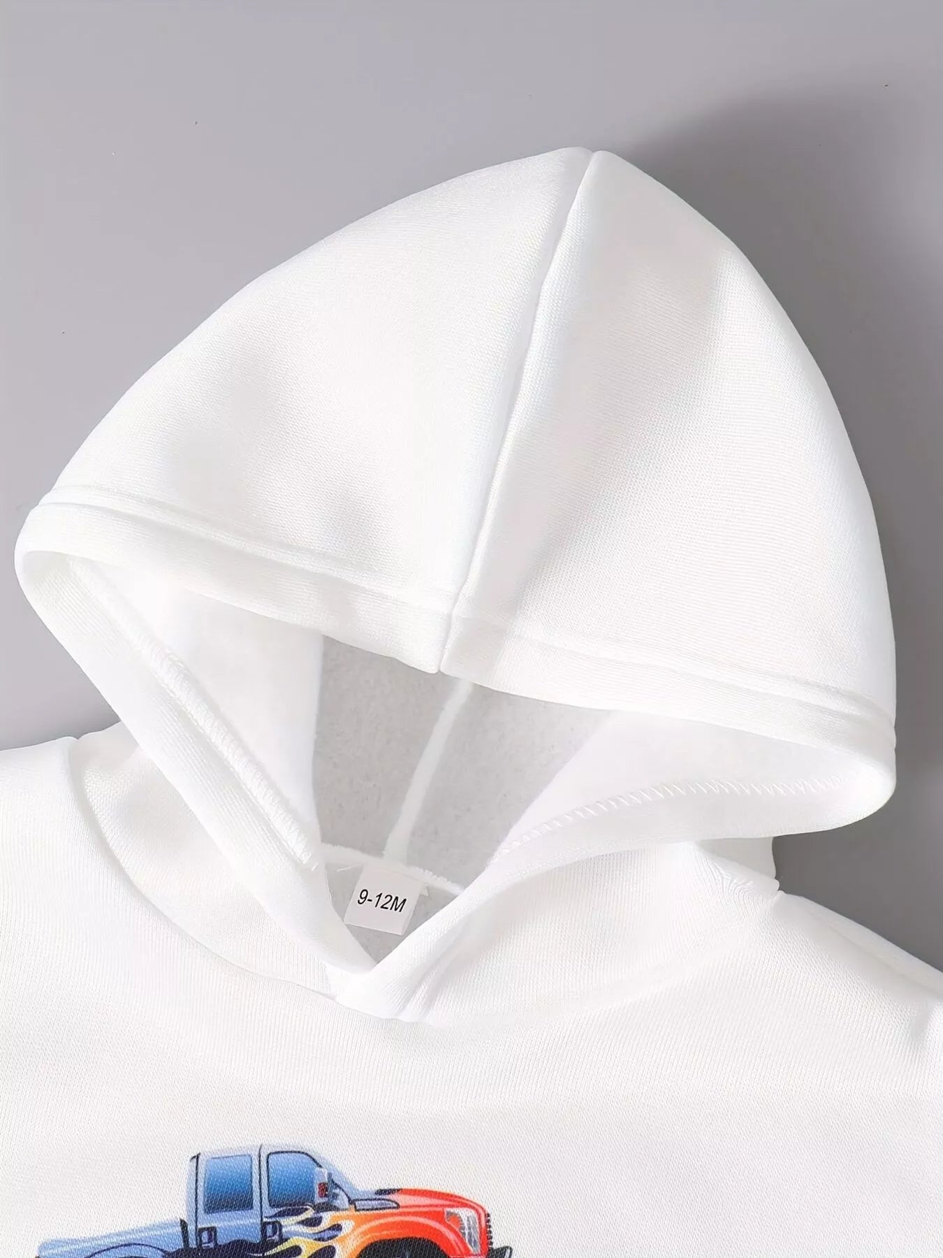Children's Cartoon Truck Graphic Hoodie & Pants Set