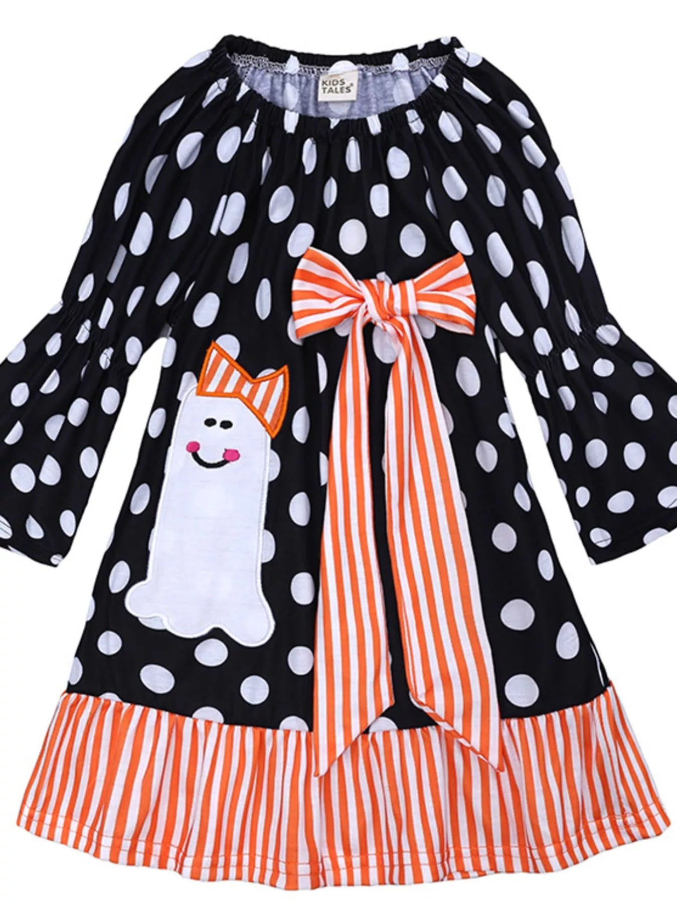 Children's Halloween Ghost Polka Dot Dress with Bow