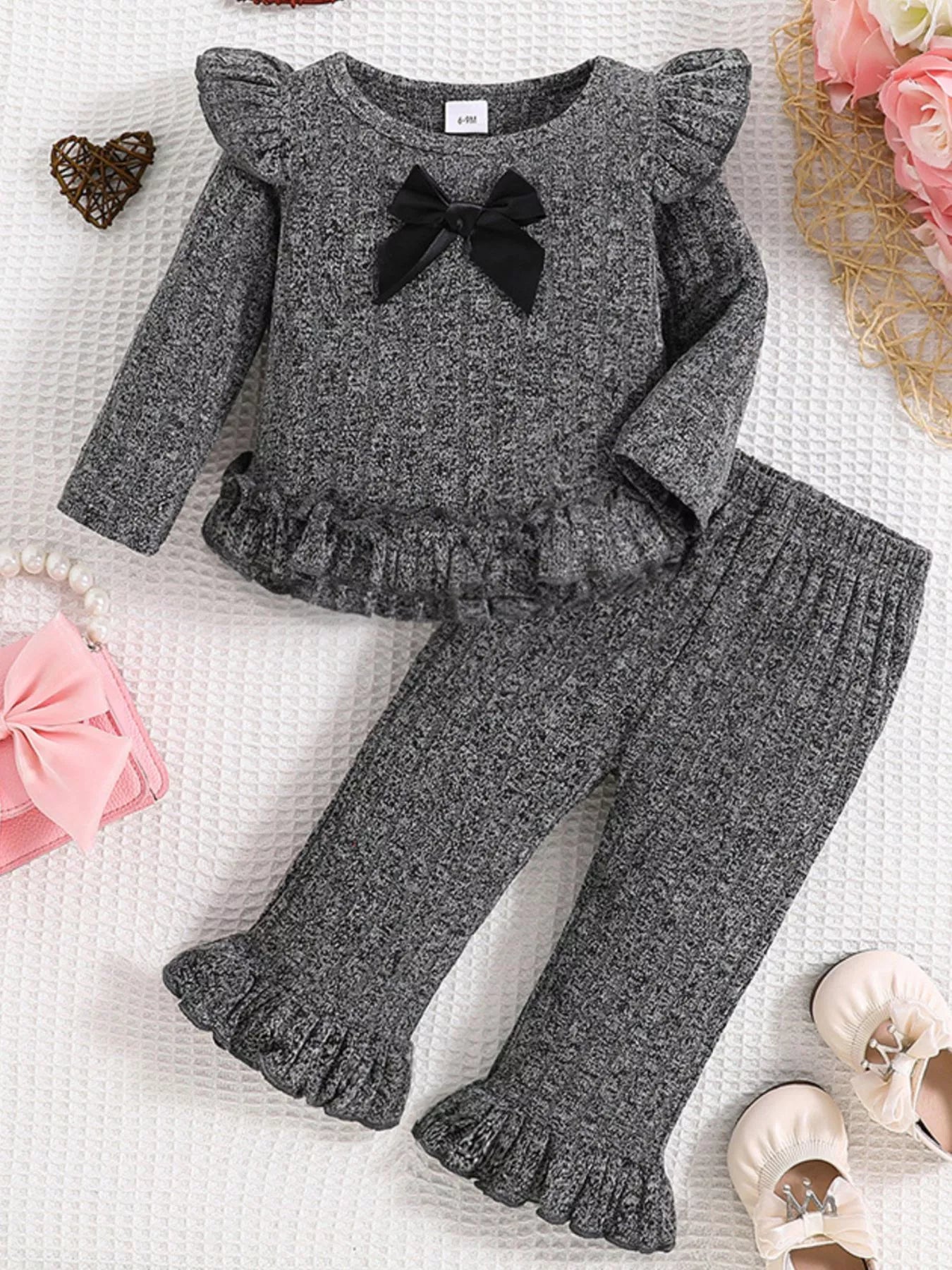 Children's Ribbed Ruffle Trim Top and Pants Set
