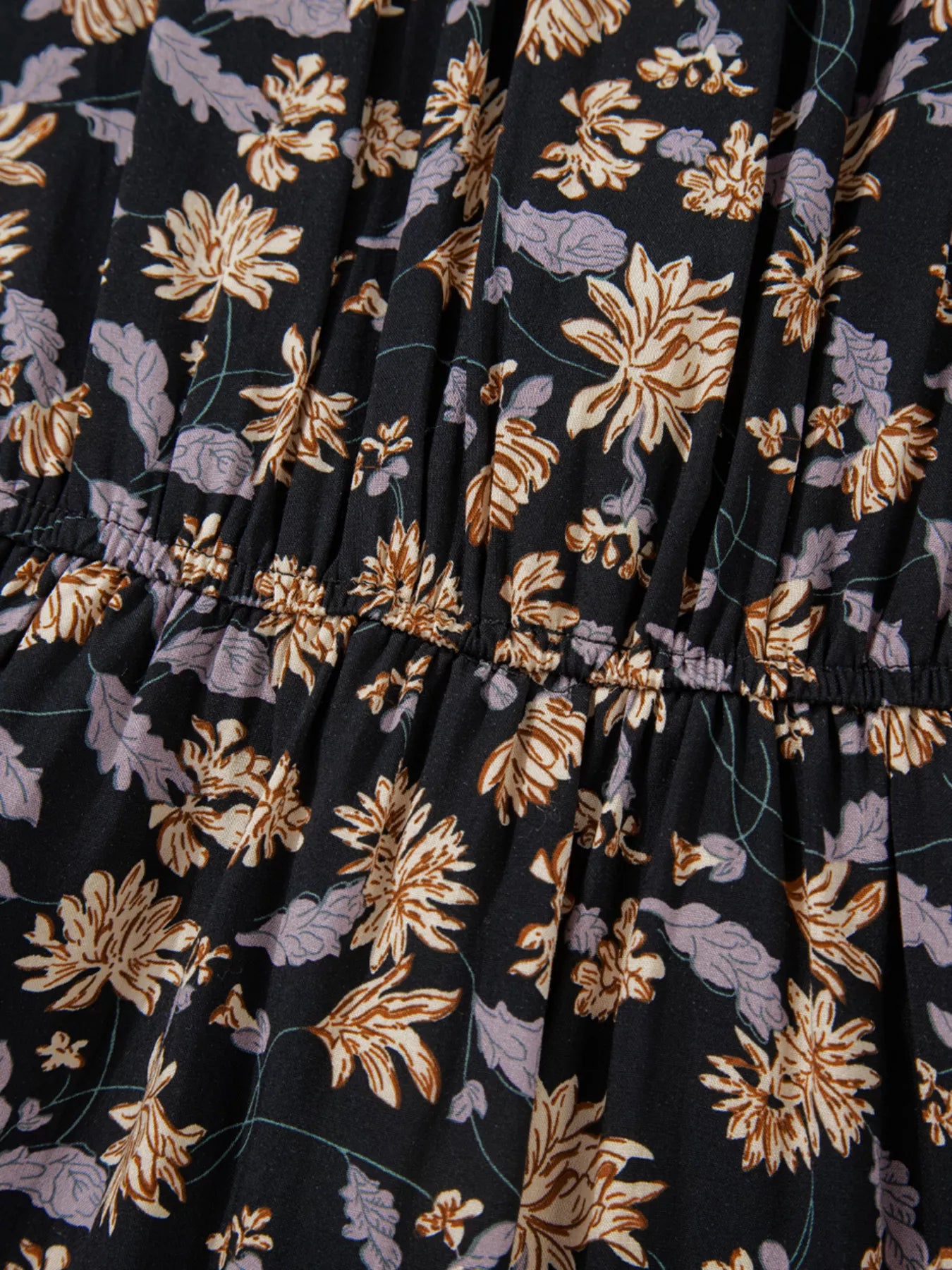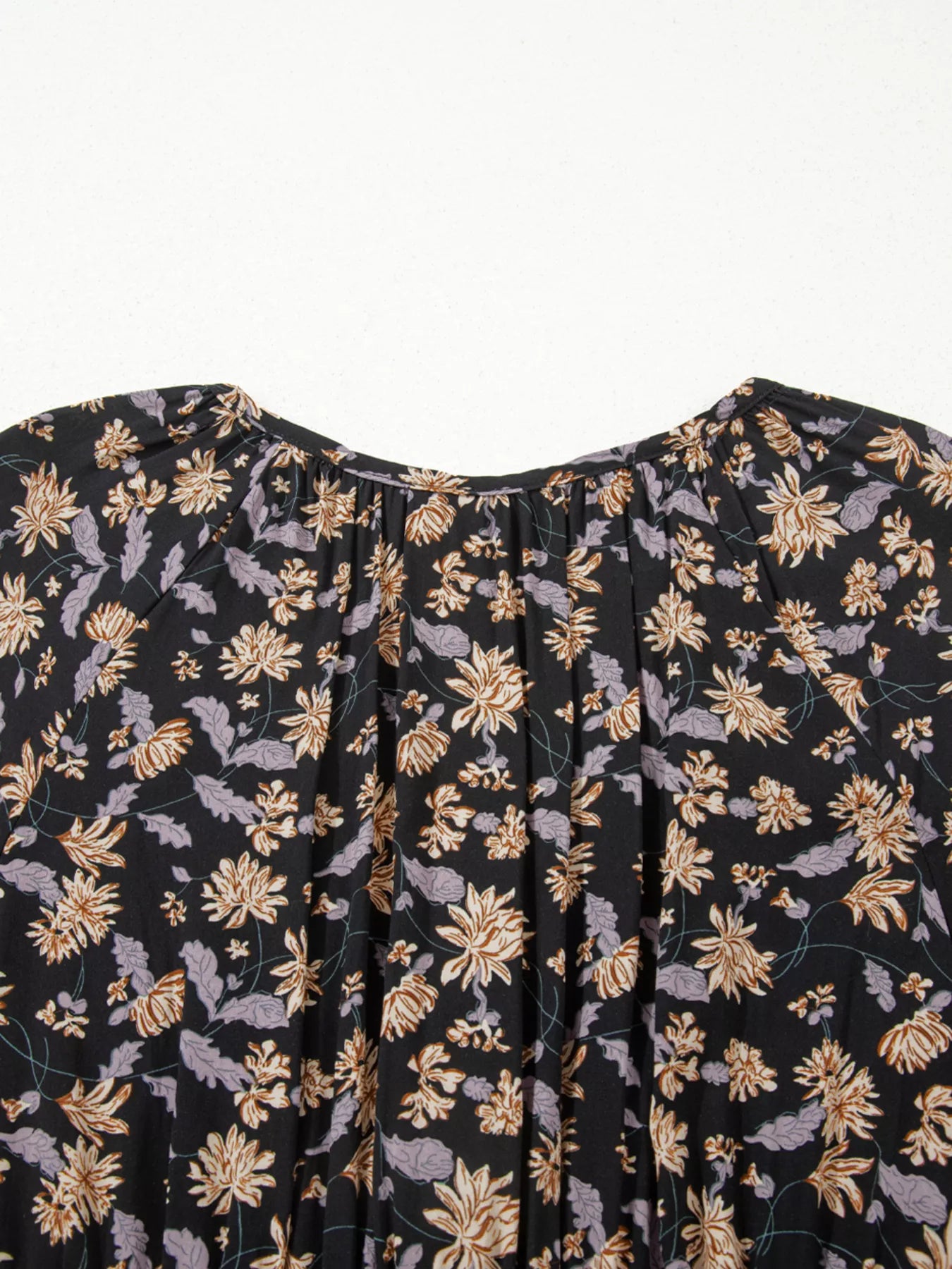 Floral Deep V Neck Smocked Bust Bubble Sleeve Babydoll Dress