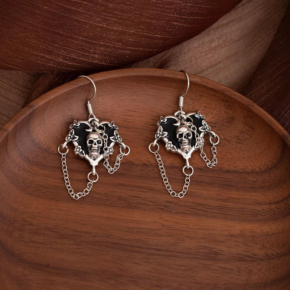 Halloween Alloy Heart Skull Earrings with Chain Detail