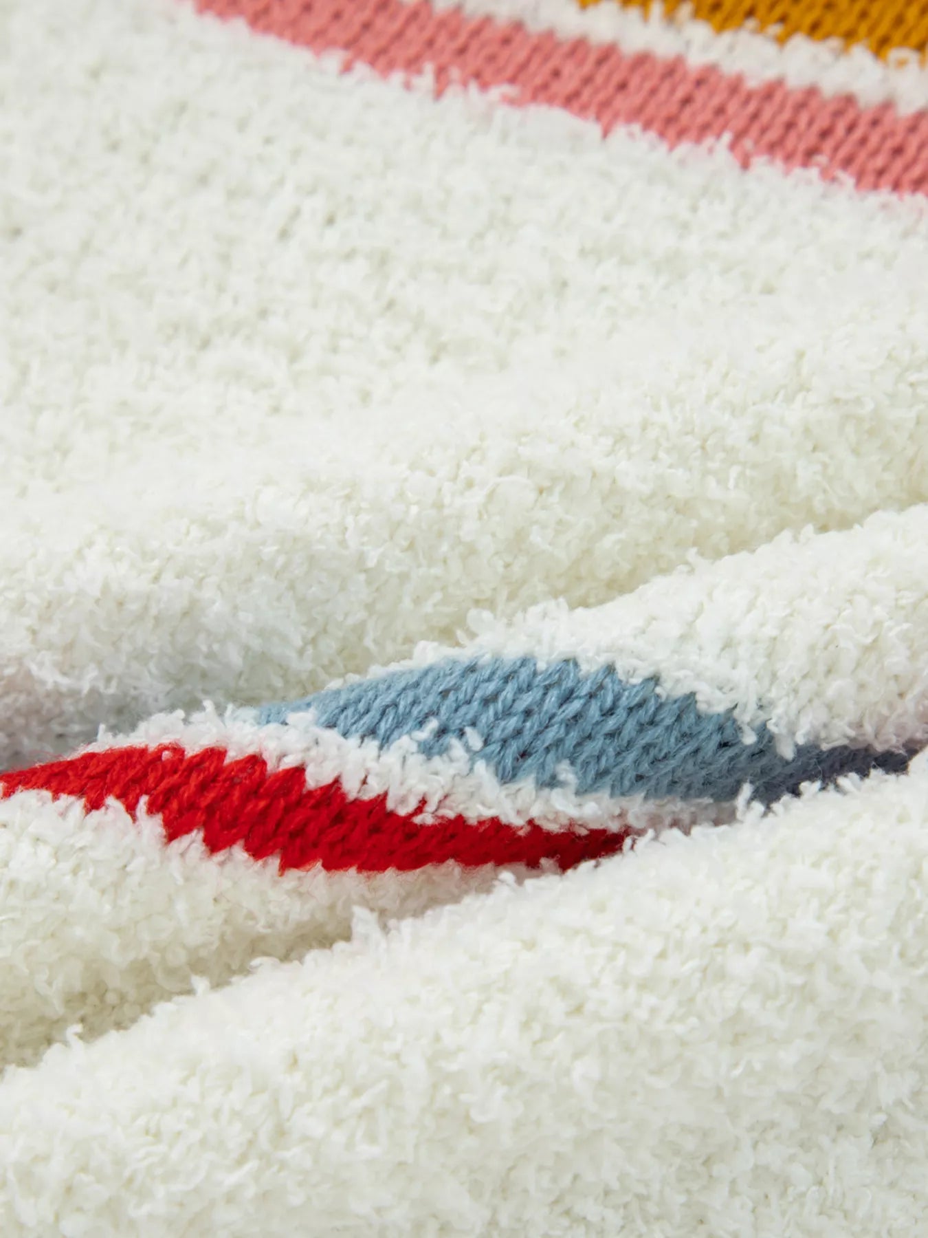 Multicolored Striped Accent Hooded Popcorn Sweater