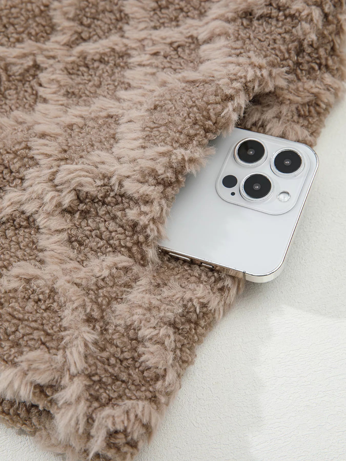 Sherpa Rhombus Zip Up Side Pocket Hooded Jacket