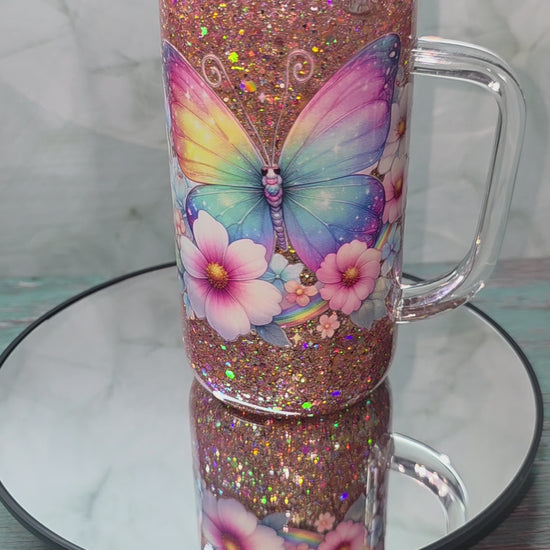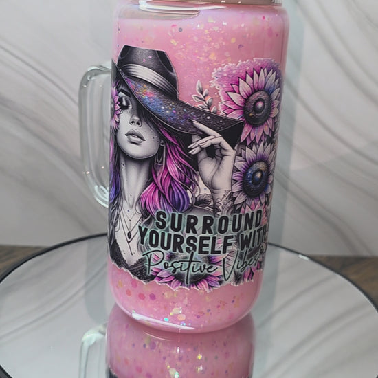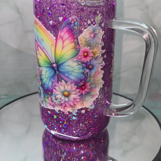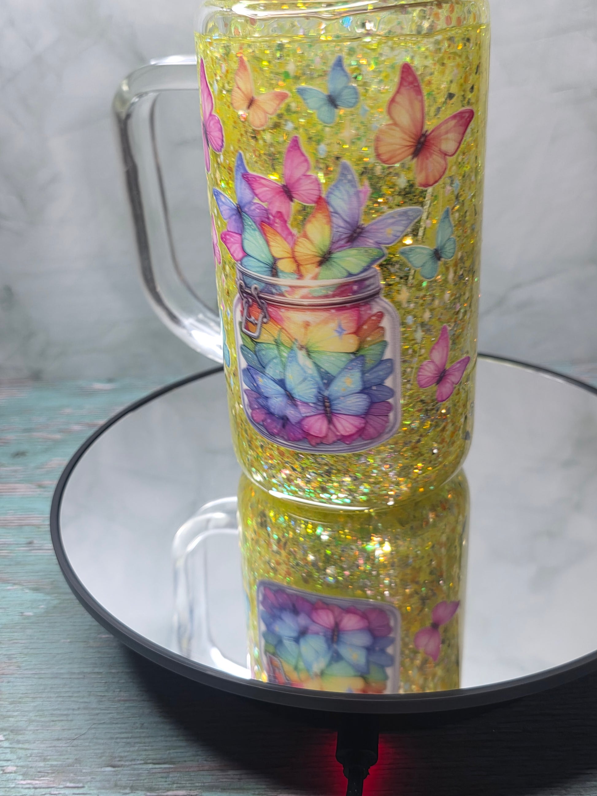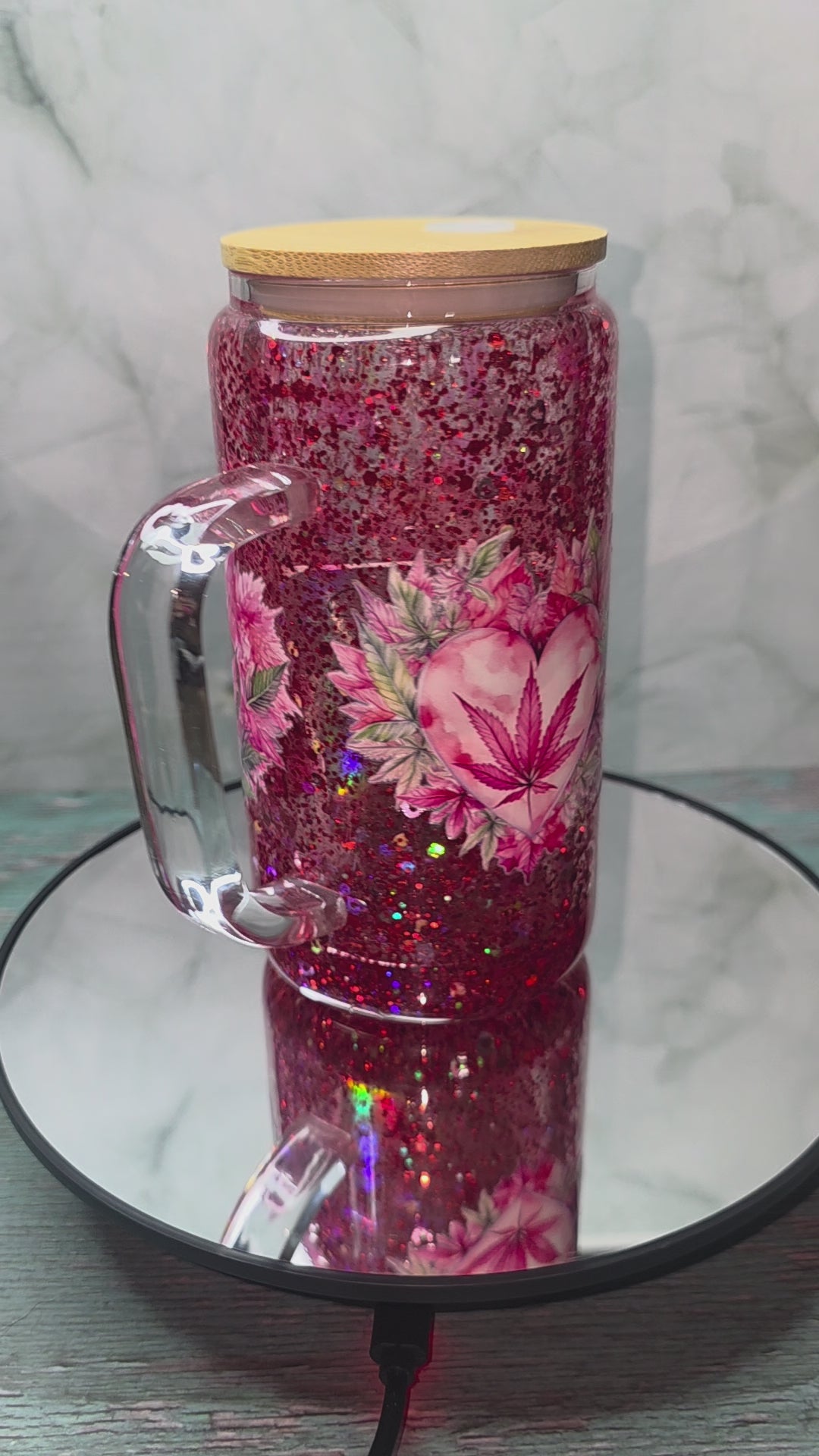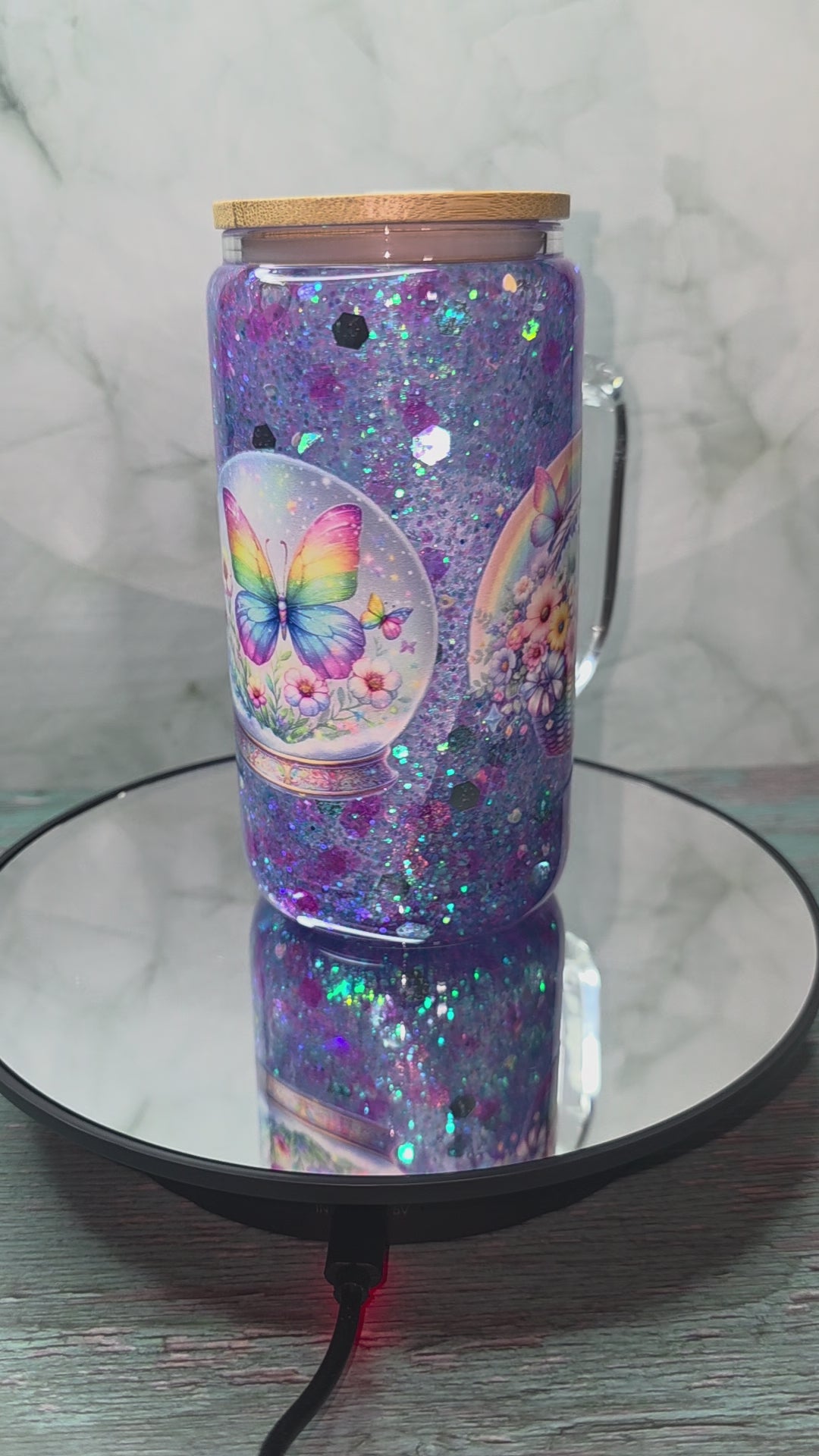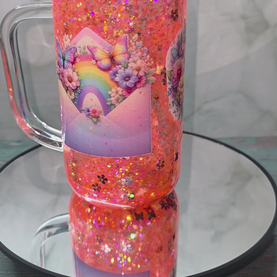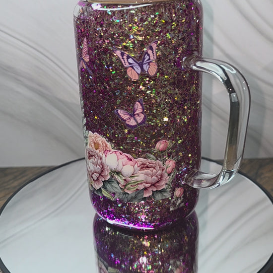 16oz Glass Snow Globe Tumblers with handle