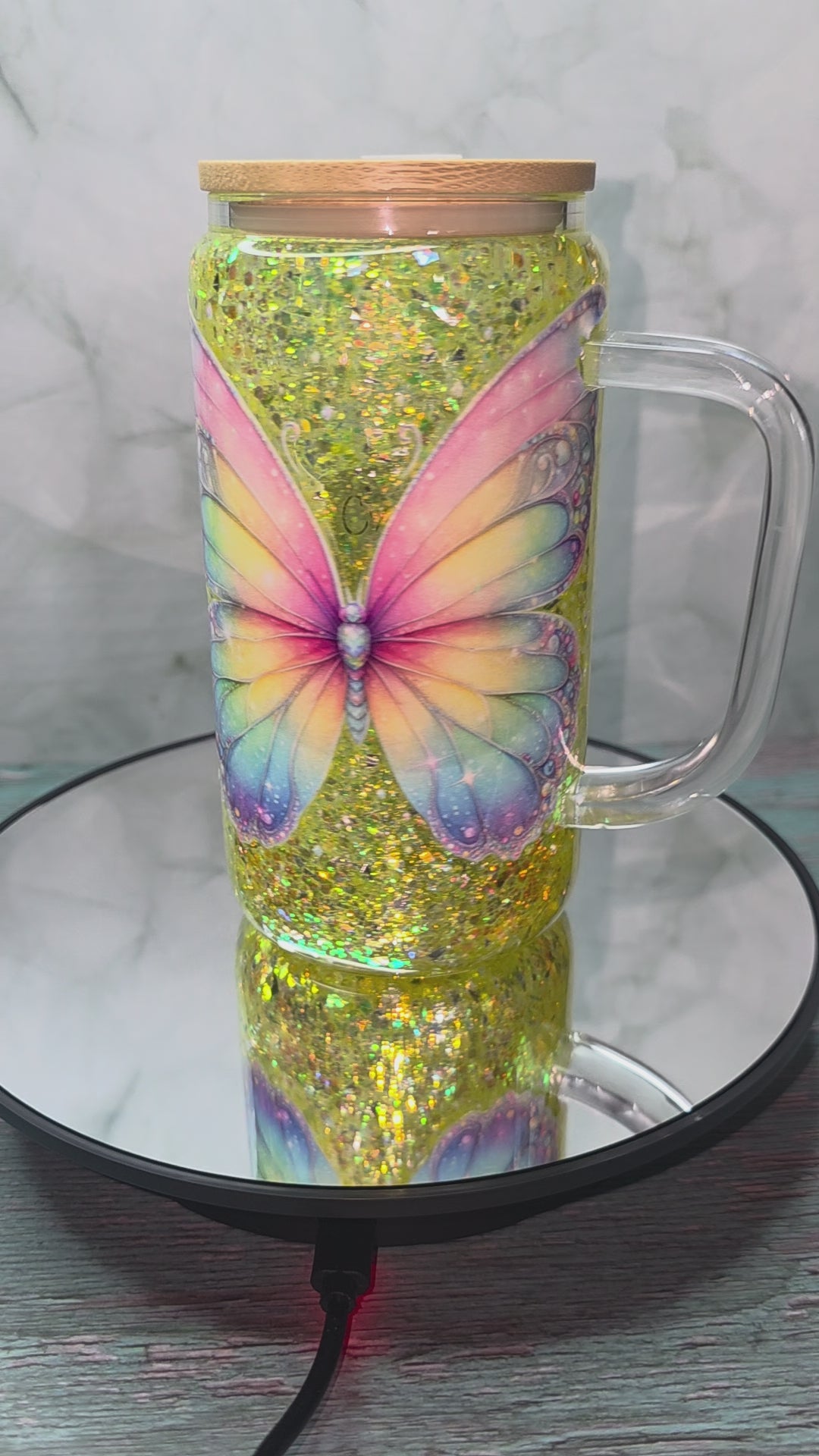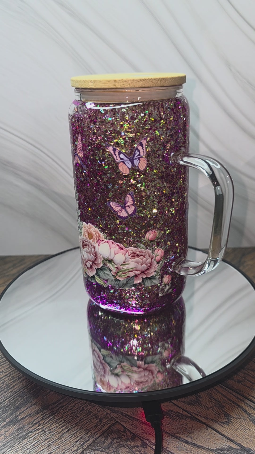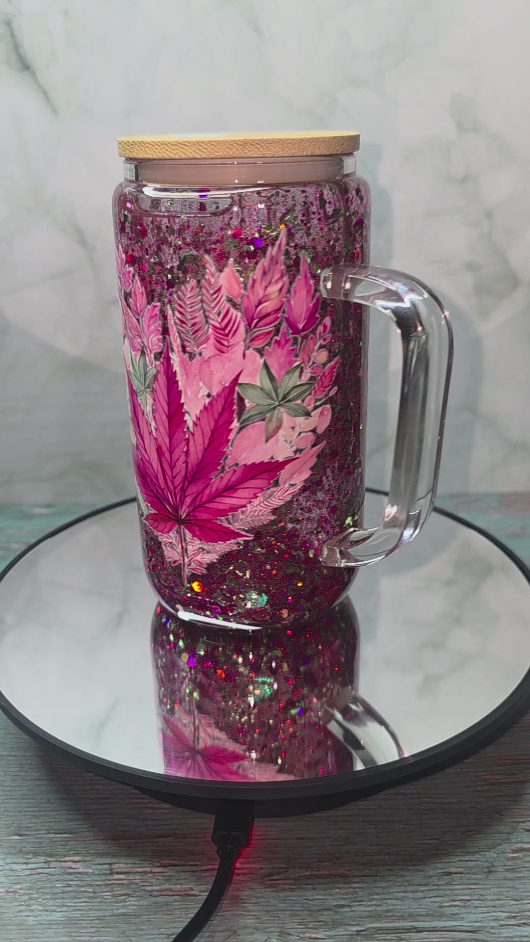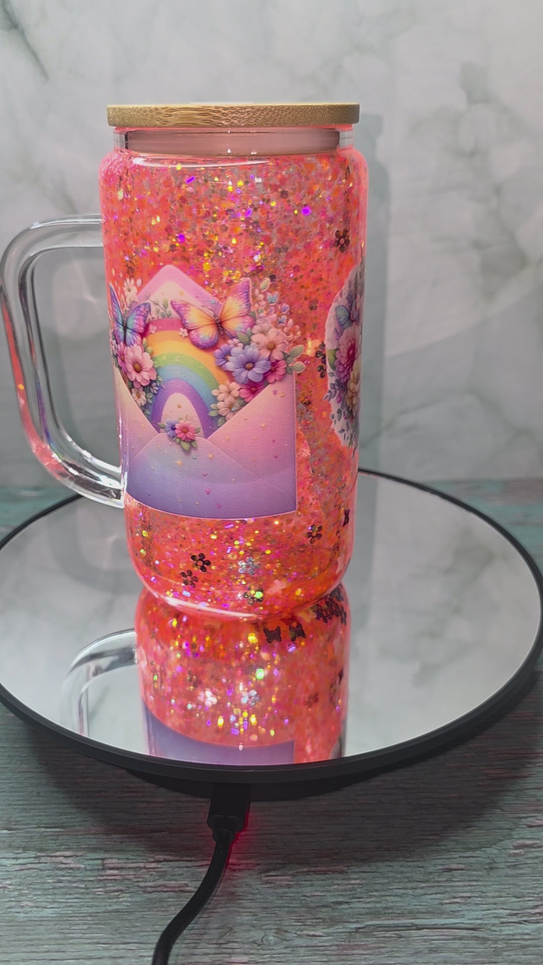 16oz Glass Snow Globe Tumblers with handle