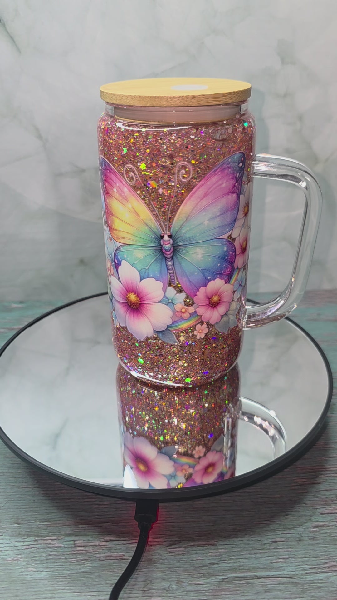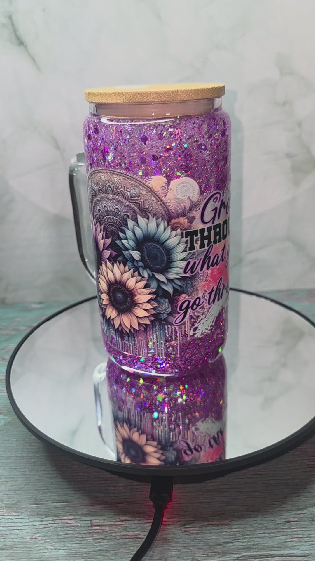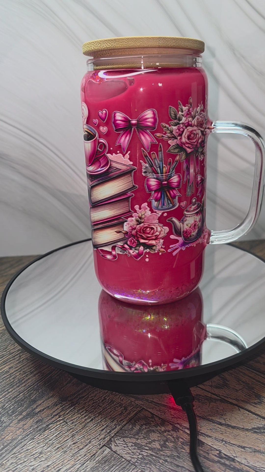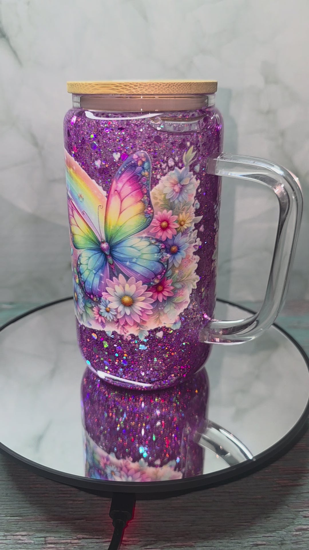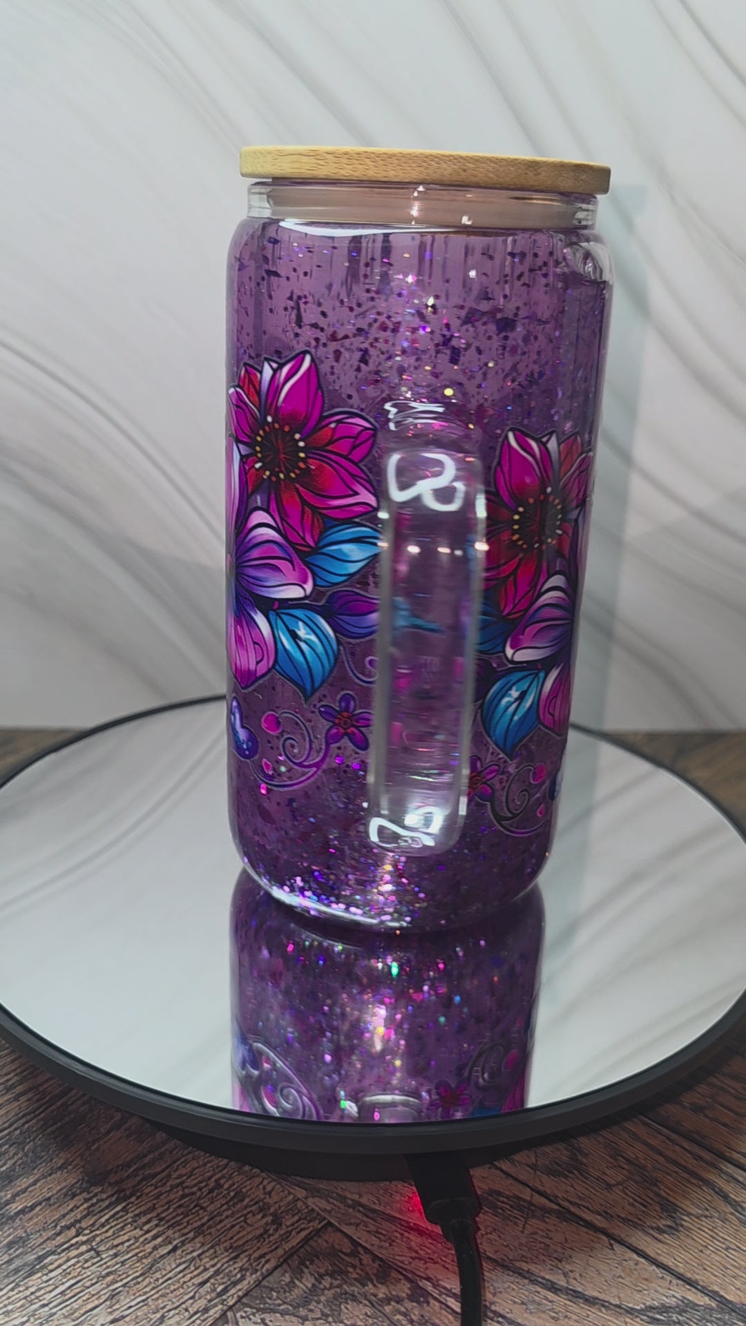16oz Glass Snow Globe Tumblers with handle