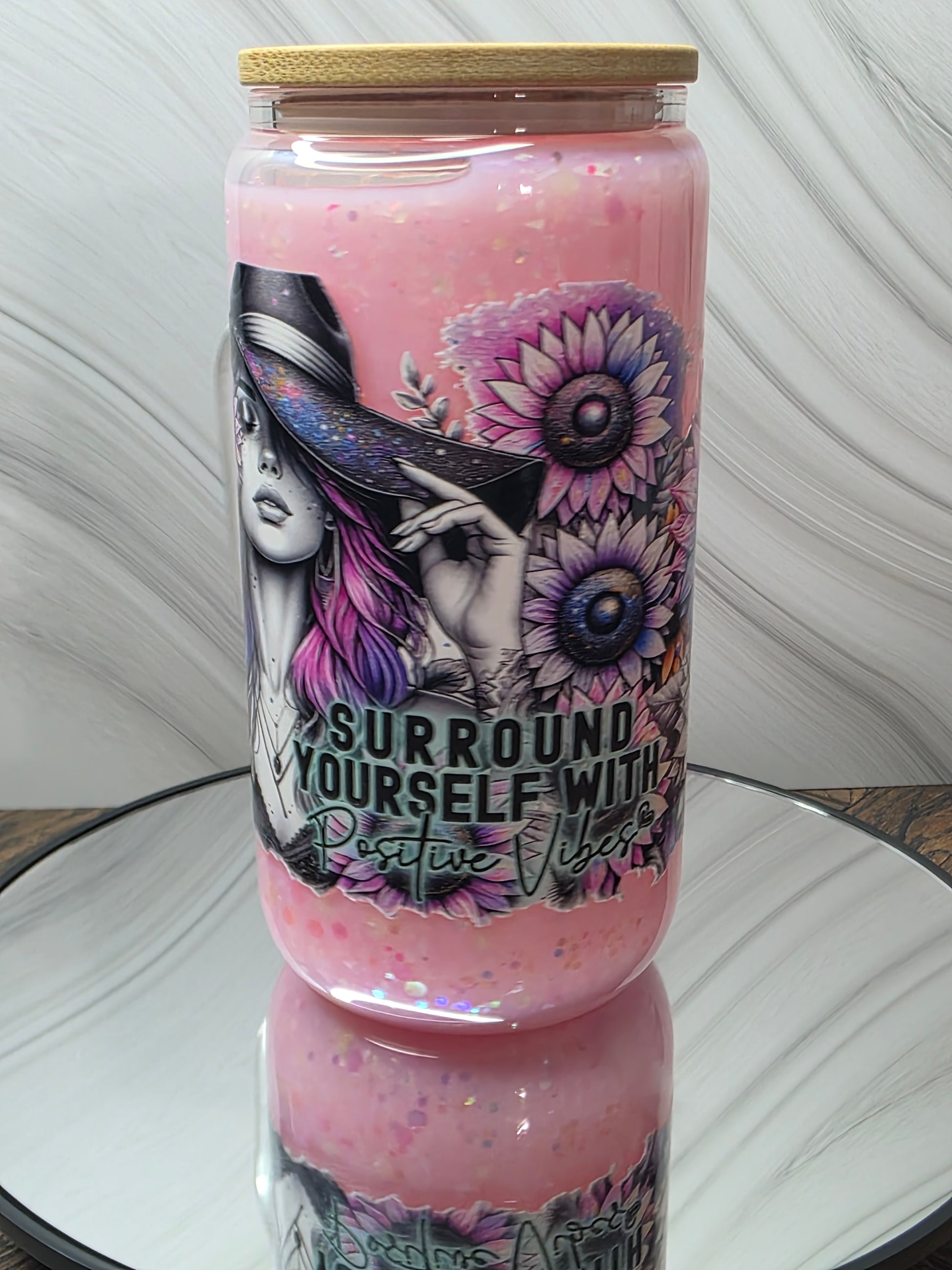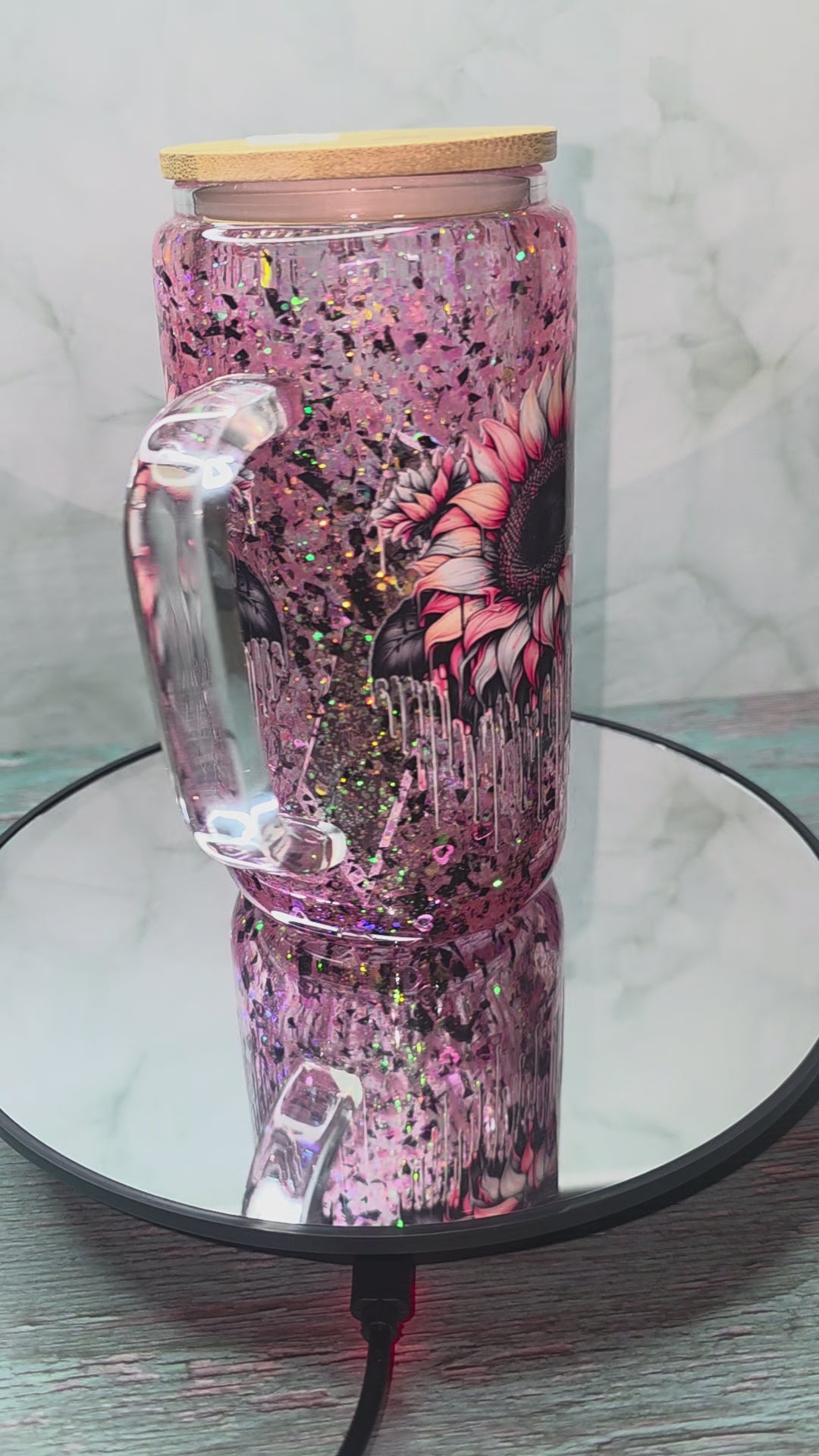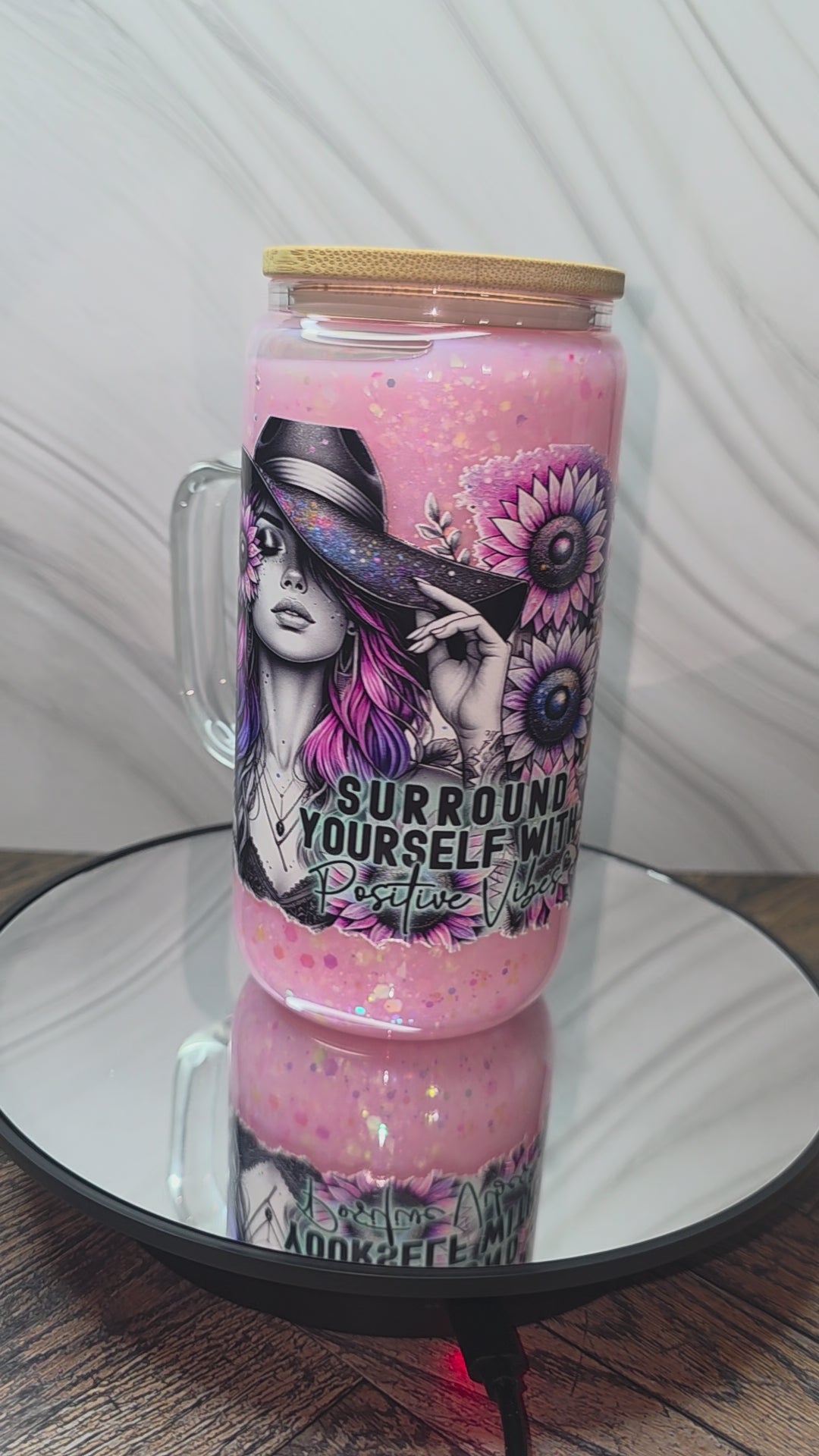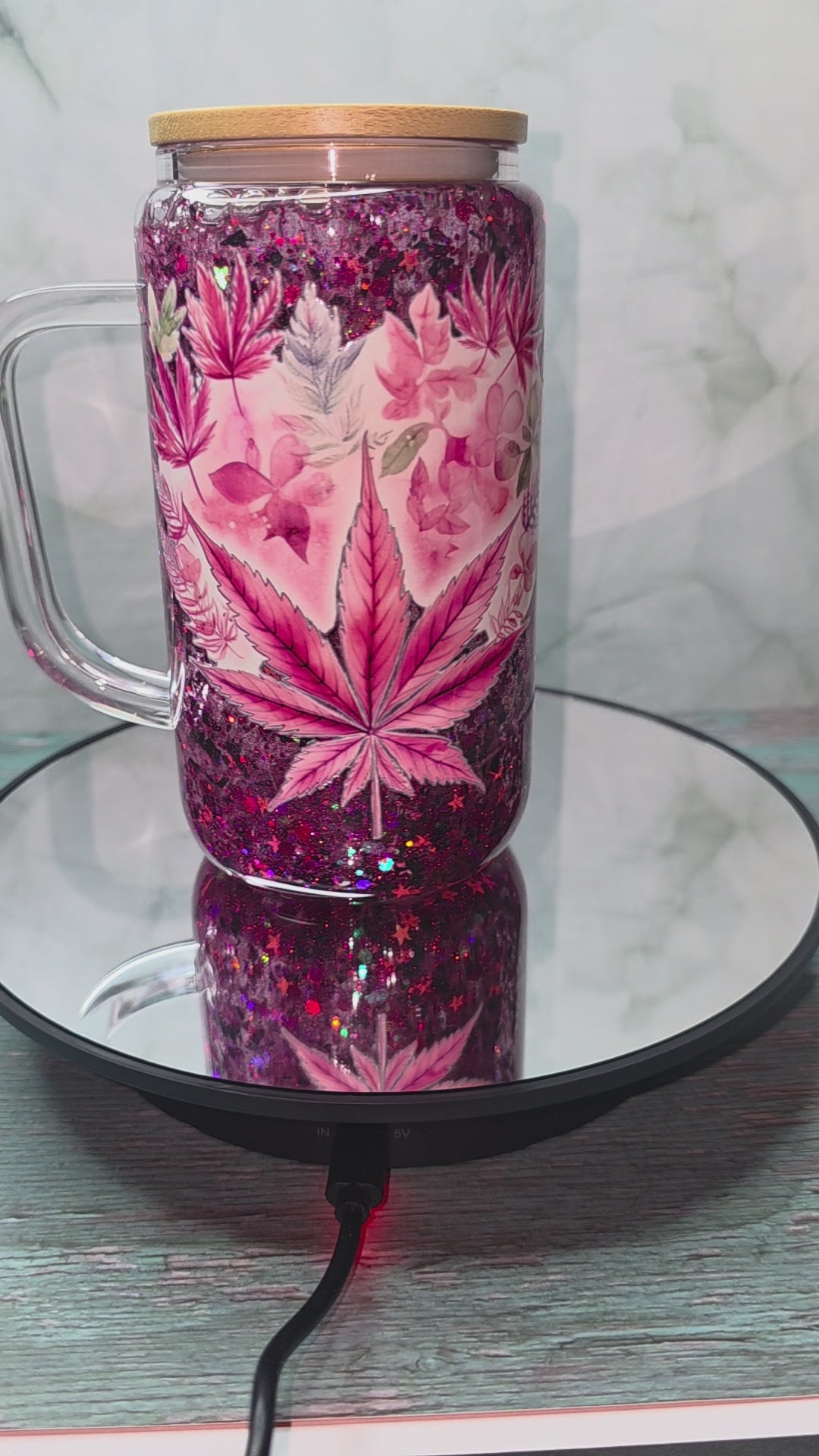 16oz Glass Snow Globe Tumblers with handle