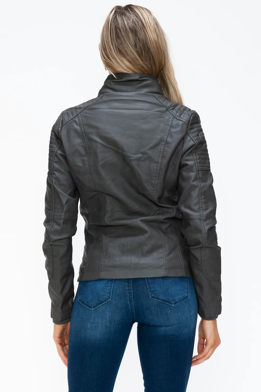 YMI Removable Faux Layered Multi-Pocket Jacket with Fuzzy Hood